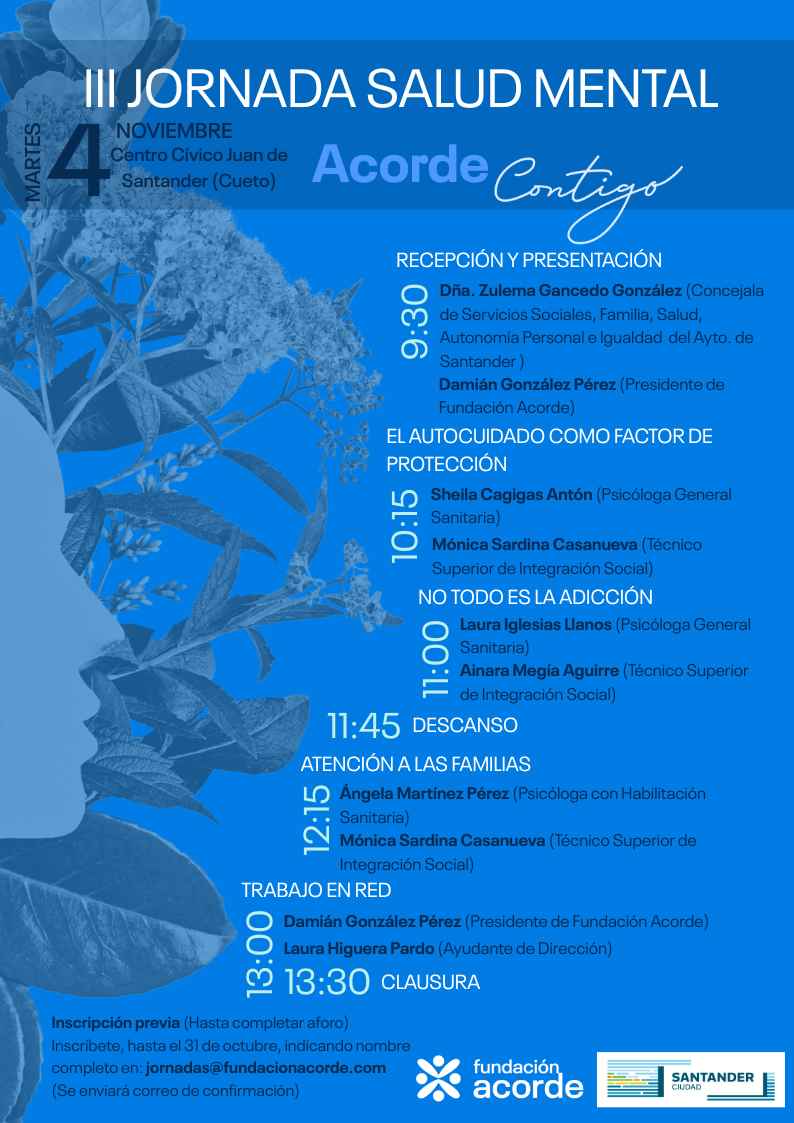 III Jornada Salud Mental – Fundación Acorde Día: 04/11/25 Hora de inicio: 9:30 am Lugar: Cueto Más información