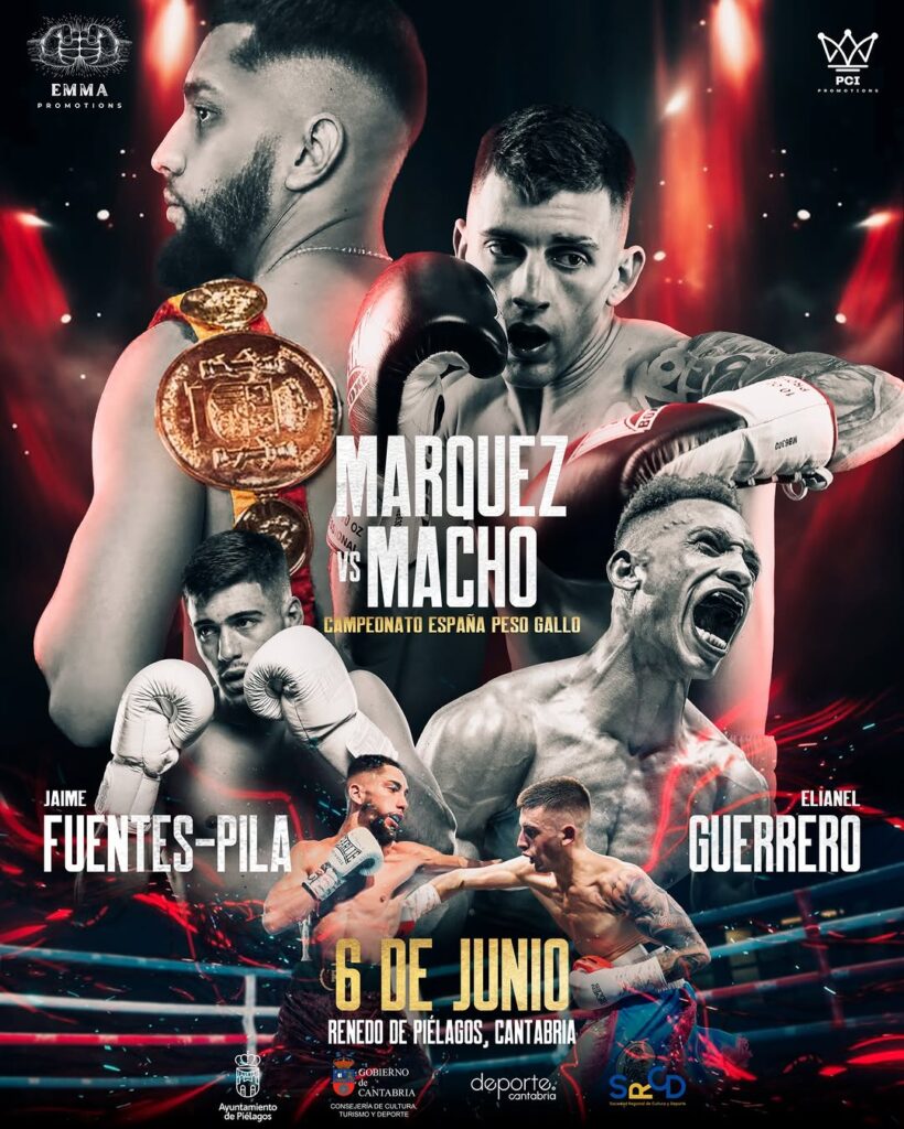Una velada de boxeo histórica llega a Renedo de Piélagos el 6 de junio. El evento principal será el asalto al título nacional del peso gallo, donde Bruno Macho se enfrentará al actual campeón sevillano Alberto Márquez (9-2-1), quien defenderá su corona con determinación. La velada también incluirá la primera pelea a 6 asaltos de Jaime Fuentes-Pila (2-0 2k) contra el peligroso Frank Rojas (25-25 con 24 kos), y Elianel Guerrero buscará una nueva victoria que le acerque al Top 100 mundial del peso superligero. Además, se celebrarán algunas de las mejores peleas amateur de la región, convirtiendo esta noche en un espectáculo completo para los amantes del boxeo