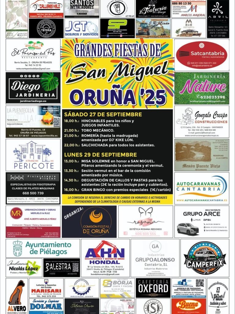 Grandes Fiestas de San Miguel Oruña 2025 en Piélagos – sábado 27 de septiembre