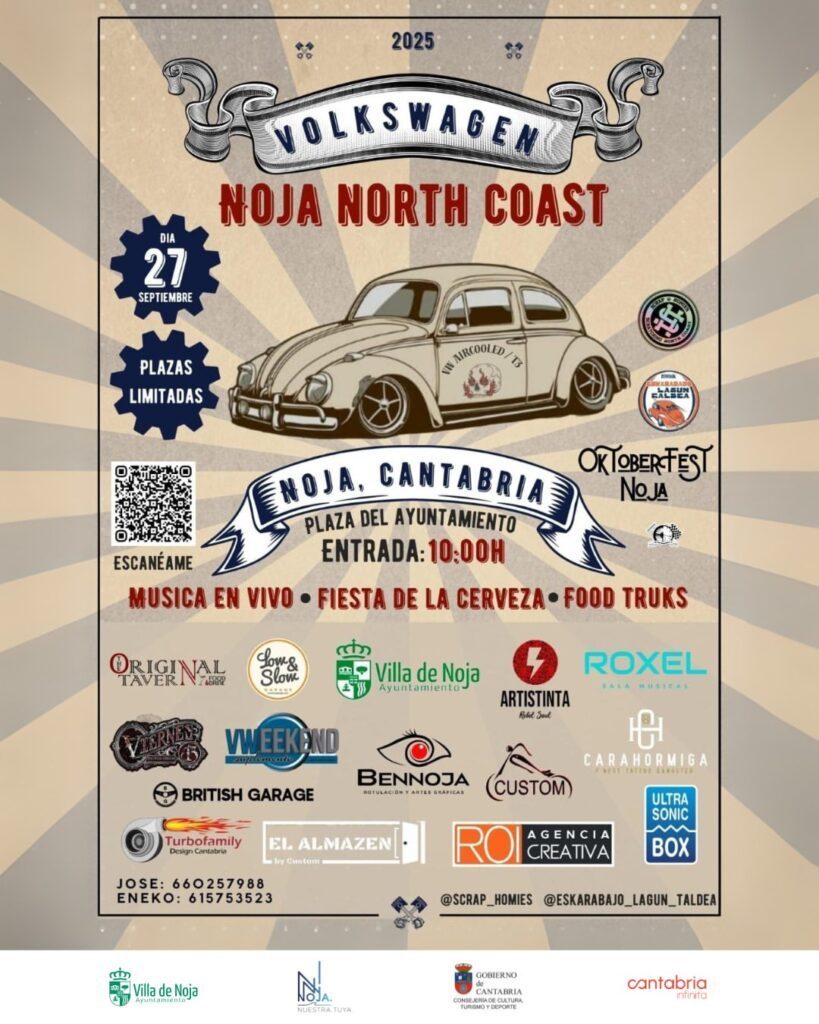 Este sábado, 27 de septiembre, desde las 10:00 horas en la Plaza De la Villa comenzará la Volkswagen Noja North Coast, un evento donde podrás ver los clásicos de la mítica marca alemana. Además, también podrás disfrutar del Oktoberfest con cerveza artesana, música en vivo y food trucks.
