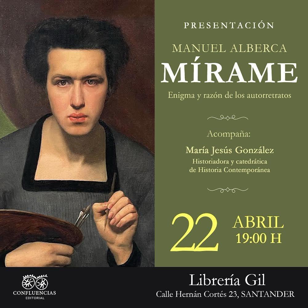 El jueves 22 de abril de 2026, a las 19:00 horas, se llevará a cabo la presentación del libro «Mírame» de Manuel Alberca en la Librería Gil de Santander. El autor, catedrático jubilado de la Universidad de Málaga, será acompañado por María Jesús González, historiadora y catedrática de Historia Contemporánea. Este ensayo pionero explora el enigma de los autorretratos, analizando obras de maestros como Dürer, Rembrandt, Goya, Kahlo y otros, y reflexiona sobre el acto creativo, obsesivo y personal de mostrarse tal como se ven. El libro no solo informa sobre el género, sino que también sirve como un espejo oblicuo para los espectadores, invitándolos a mirarse y reconocerse. La presentación es una oportunidad para conocer el pensamiento del autor sobre el arte, la identidad y la mirada del espectador. La entrada es libre hasta completar el aforo