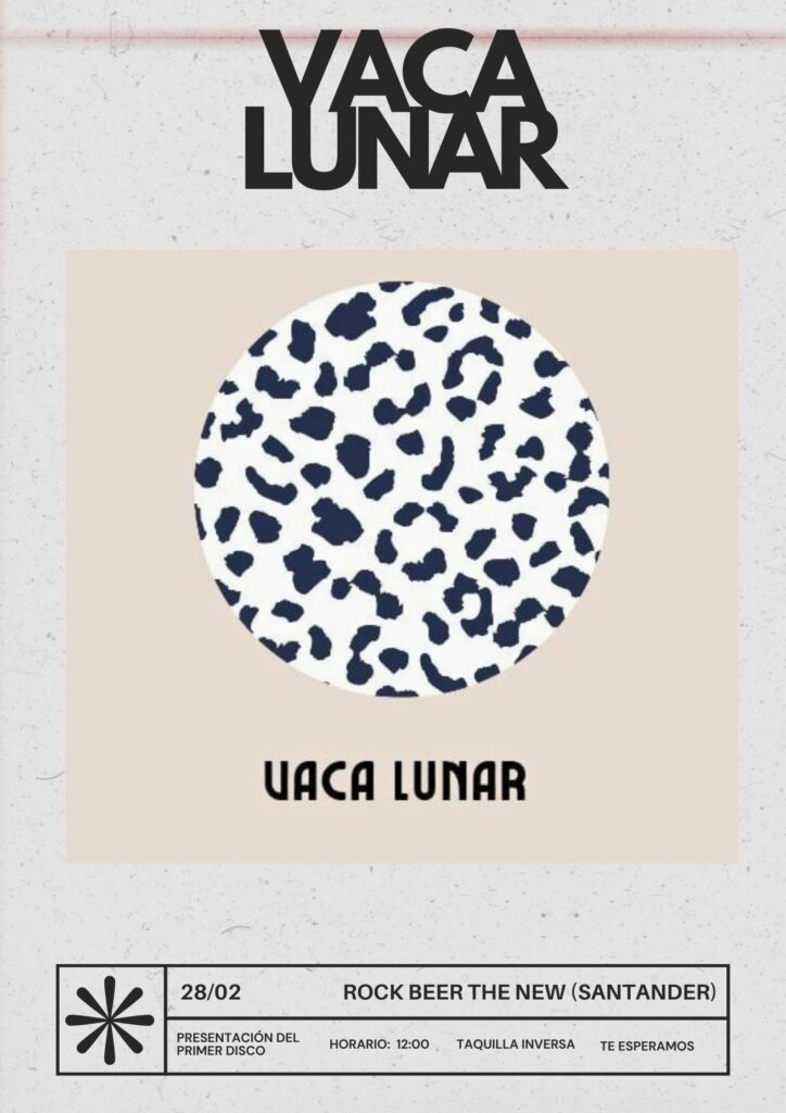 Vaca Lunar presenta en directo su primer disco homónimo en un concierto que se celebrará el sábado 28 de febrero de 2026 a las 12:00 horas en la Sala Rock Beer the New, un espacio destacado de la escena musical de Santander. El evento, organizado por el propio recinto, ofrece una experiencia musical en vivo con una propuesta sonora que fusiona elementos de pop y rock con toques experimentales. La taquilla será inversa, lo que significa que el acceso será gratuito tras una donación voluntaria. Este concierto representa un hito para la banda, que desde su formación ha ganado reconocimiento por su sonido innovador y su energía escénica. No te pierdas esta oportunidad de disfrutar de un concierto íntimo y emocionante en un de los locales más emblemáticos de la ciudad