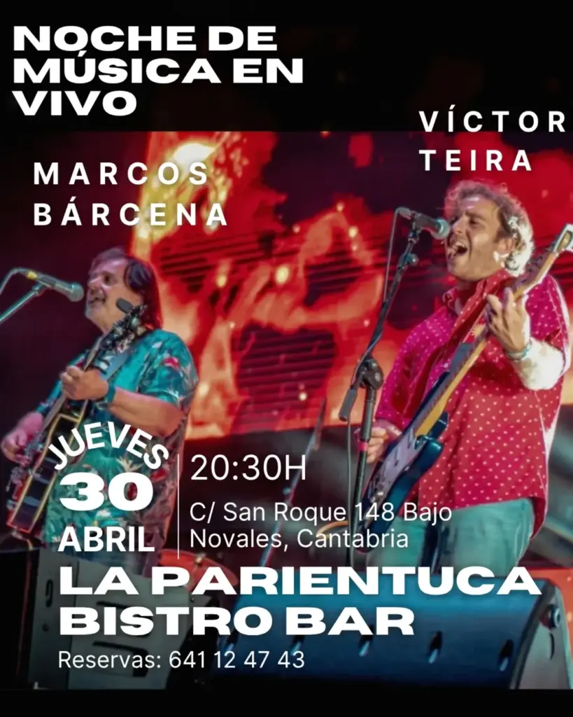 Víctor Teira y Marcos Bárcena en directo en La Parientuca en Alfoz de Lloredo – jueves 30 de abril